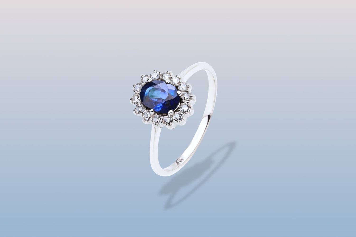 Ring aus Gelbgold, Saphir, Diamanten und Onyx
