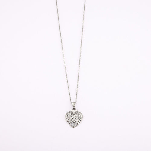Anhänger aus 18 Karat Weißgold in Form eines mit Diamanten besetzten Herzens an einer Weißgoldkette.