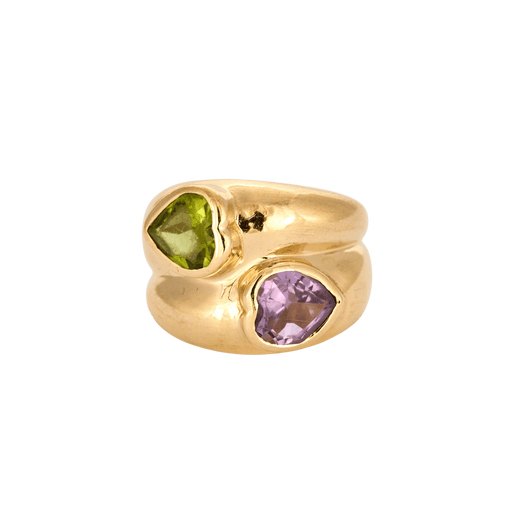 Ring aus Gelbgold Toi & Moi Amethyst und Peridot