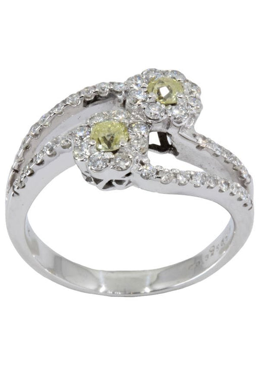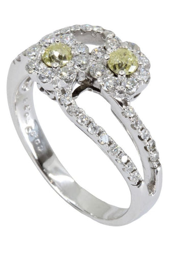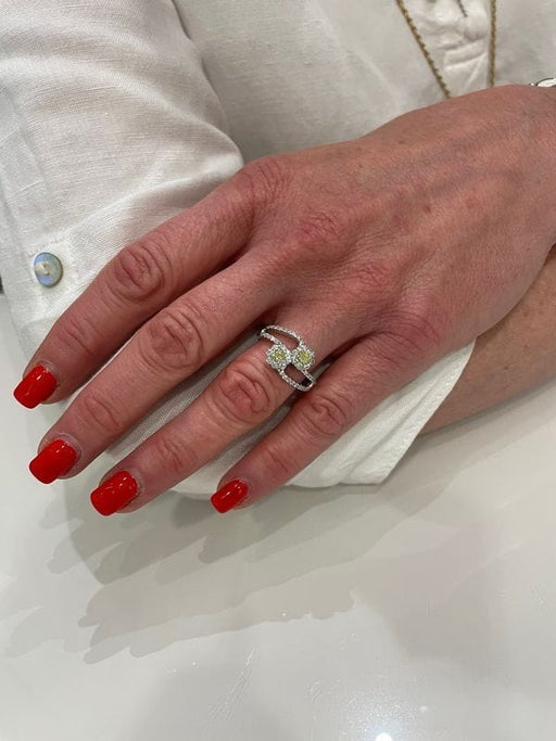 Ein gelber Diamant verdankt seine Farbe dem Vorhandensein von Stickstoff in seiner Zusammensetzung. Dieser You & Me-Ring ist in einwandfreiem Zustand.