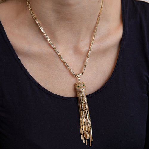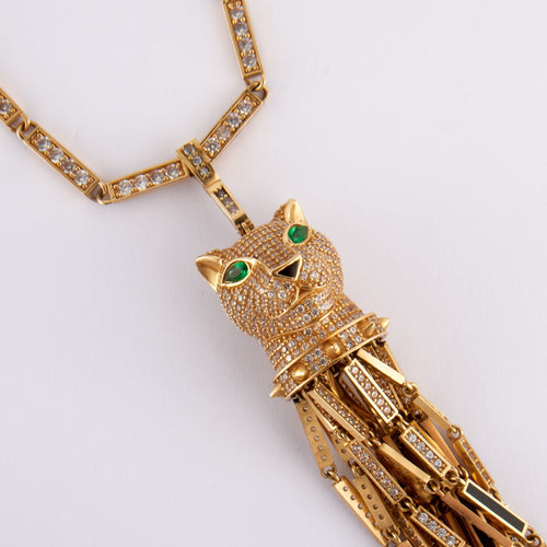 Halskette mit Anhänger, Pantherkopf aus Gelbgold