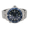 Omega-Uhr Modell Seamaster Diver aus Stahl, Seriennummer 78508925, blaues Zifferblatt mit Indexen, Quarzwerk, 41-mm-Gehäuse, Saphirglas, Stahlarmband-Faltschließe mit Taucherverlängerung (Handgelenkgröße 18,50 cm, Armbandbreite 20 cm), Gesamtgewicht: 141,44 g , Originalpapiere und Kundendienstbox, 2000er Jahre, komplett überholt, hervorragender Zustand
