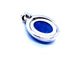 Anhänger aus 750 Tausendstel (18 Karat) Weißgold, blauer Achat-Cabochon von ca. 31,55 ct (Abmessungen: 24,5 mm x 18 mm), Anhängerabmessungen: 4,20 cm x 2,35 cm (einschließlich Öse), leicht abgesplitterter Stein, Gesamtgewicht: 9,90 g , Adlerkopfpunze an der Öse leicht verblasst, Hervorragender Zustand