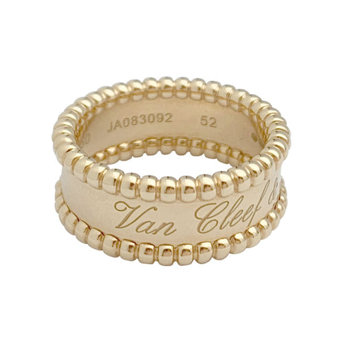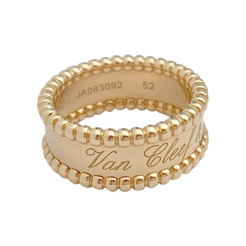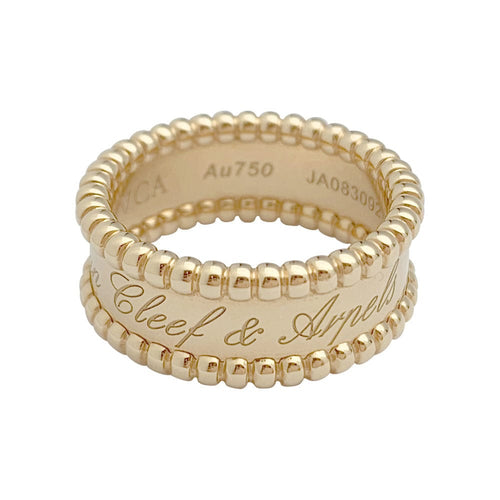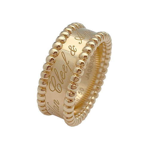 Ein Ring, signiert vom Haus Van Cleef und Arpels: „Perlée Signature“, aus 750/000-Roségold, mit einem glatten Band mit Perlenverzierung und einer Gravur: „Van Cleef & Arpels“.