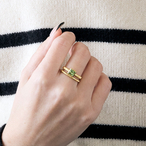 Neuer Designerring mit gestreiftem Doppelarmreif, besetzt mit einem quadratischen Peridot