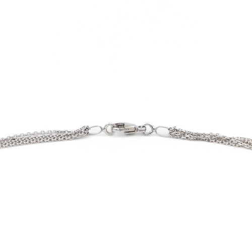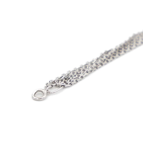 Halskette aus 750 Tausendstel (18 Karat) Weißgold, bestehend aus 5 Sträflingsgliederketten, Länge der Halskette: 44 cm, Breite einer Kette: 0,06 cm, Gesamtgewicht: 8,68 g, Eulenpunze, ausgezeichneter Zustand