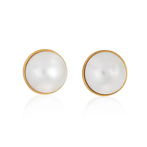 Fein detailliertes Paar Vintage-Mabe-Perlenohrringe von Tiffany & Co aus 18 Karat Gelbgold. Mabe-Perlen messen ca. 13mm.