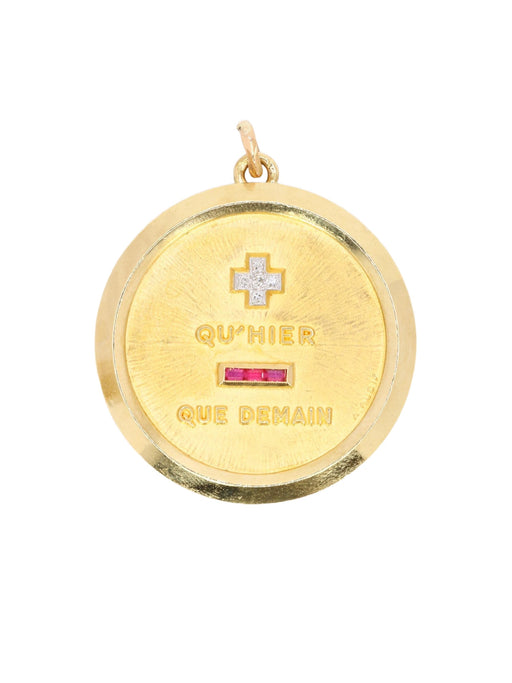 Augis Love Medal JUMBO Mehr als gestern, weniger als morgen, Gelbgold, Diamanten, Rubine