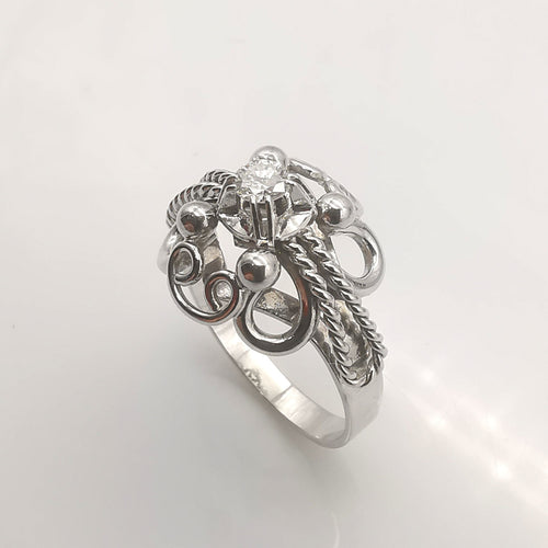 Sortija antigua en oro blanco de 18 quilates engastada en el centro con un diamante talla brillante de aproximadamente 0,20 ct G VS