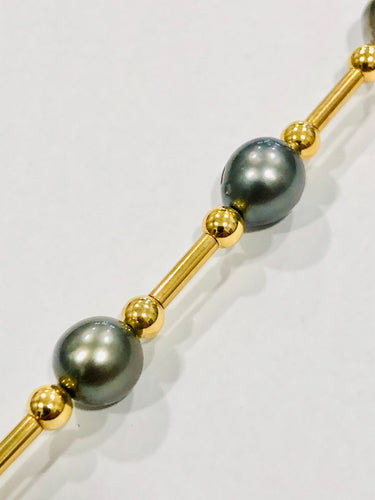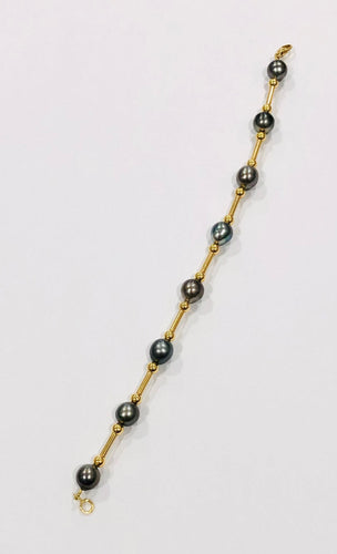 Pulsera de perlas de Tahití (8 perlas: diámetro 7,6 mm), alternadas con bolas y tubos de oro amarillo de 18k (750 ml).