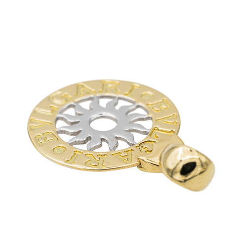 Colgante firmado por la Casa Bulgari en oro amarillo y blanco de 750 milésimas (18 quilates), modelo Tondo, dimensiones con la fianza: 2,95 cm x 1,91 cm, peso total: 3,50 g, sello de búho, excelente estado
