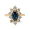 Anillo en oro amarillo de 750 milésimas (18 quilates), engastado con zafiro y diamantes, 1 zafiro talla oval, con un peso total de 1,55 cts aproximadamente, rodeado de 10 diamantes talla brillante, aproximadamente G-SI, un peso total de aproximadamente 1 ct (cada diamante pesa aproximadamente 0,10 ct), peso total del diamante aproximadamente: 1 ct, ancho en la parte superior : 1,18 cm, Talla de anillo : 49, peso total: 4,63 g, sello de cabeza de águila, excelente estado