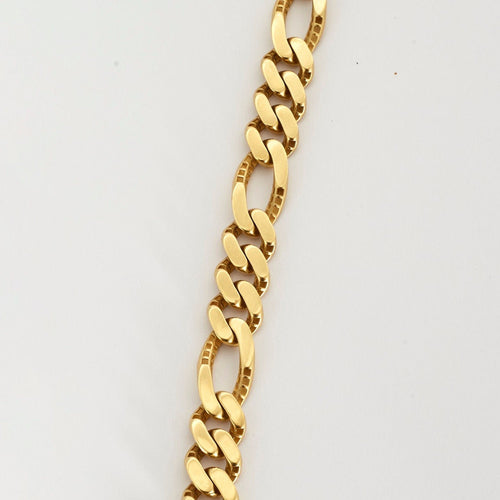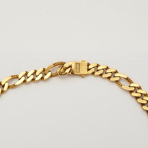 Collar en oro amarillo 750/1000, eslabón Cadena barbada alterna (3+1) semimasiva, lisa y brillante. Equipado con un cierre de clip de 2 puntas.