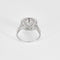 Anillo en oro blanco de 18 quilates (750 milésimas), la canasta de forma cuadrada con esquinas redondeadas engastada con un pavé de diamantes redondos talla brillante que calibran entre 0,01 quilates y 0,15 quilates aproximadamente y sostenido a cada lado por cuatro diamantes redondos talla brillante, cada uno de ellos calibrado. aproximadamente 0,01 quilates.