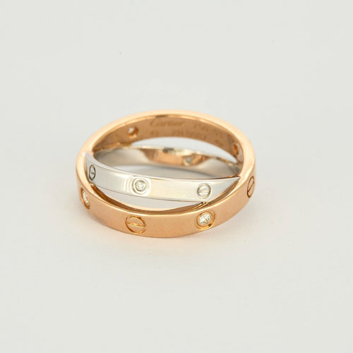 CARTIER - Doble Love - Anillo en oro rosa y blanco y diamantes.
