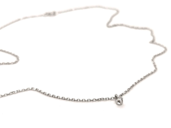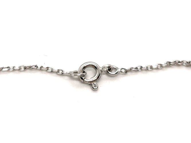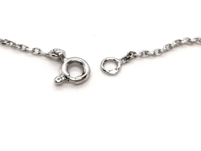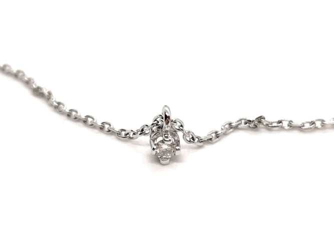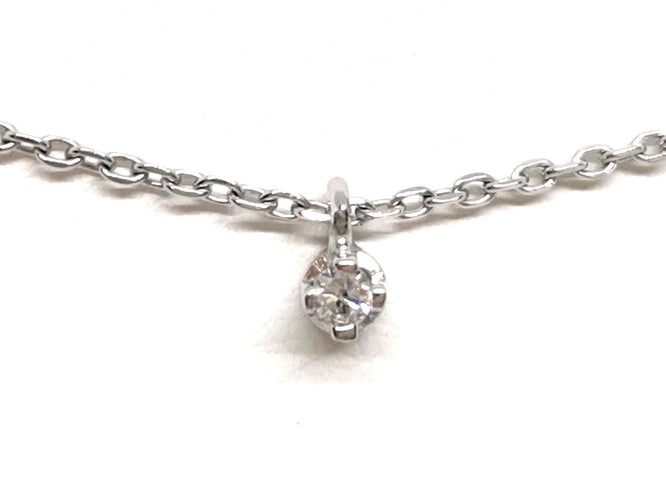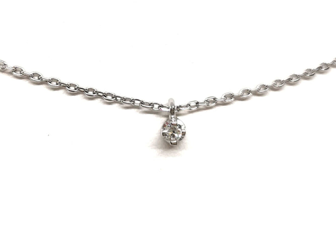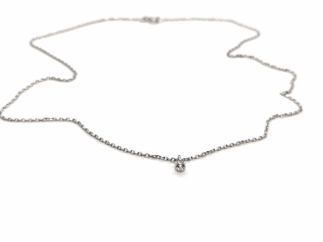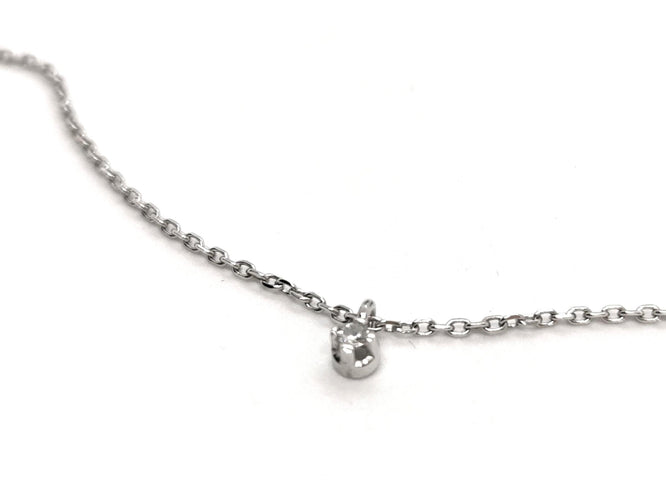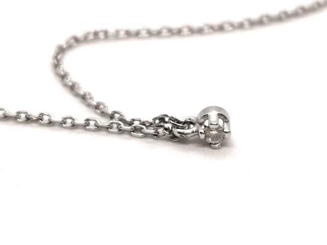 Collar de cadena con colgante de diamantes, en oro blanco probado de 750 milésimas (18 quilates), compuesto de un colgante móvil, engastado con un diamante talla brillante, de aproximadamente 0,04 ct, aproximadamente H/VS, sostenido por una fina cadena eslabón convicto, longitud de la cadena: 40 cm, dimensiones del colgante: 0,53 cm X 0,29 cm, peso total: 2,24 g, sello de cabeza de águila, excelente estado.