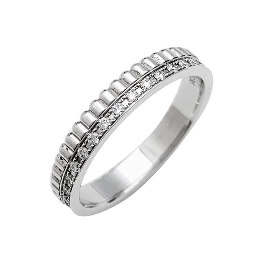 A Anillo de matrimonio firmado por la Cámara Boucheron, recopilación "Quatre Radiant Edition", en oro blanco 750/000 y diamantes talla brillante.