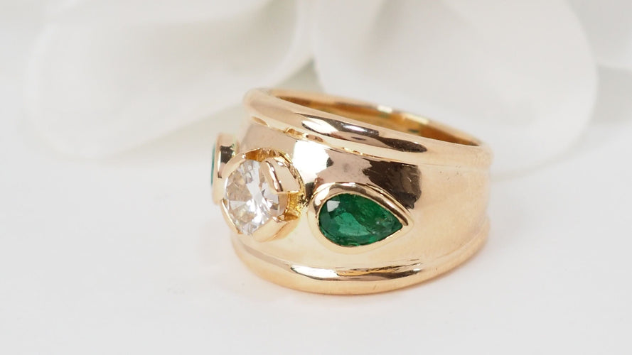 Sortija Jonc en oro amarillo, esmeraldas y diamantes