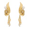 Par de pendientes colgantes de perlas y diamantes, en oro amarillo de 750 milésimas (18 kilates), 2 perlas de 6,20 mm, con 14 diamantes talla antigua, aproximadamente F/SI, con un peso total aproximado de 0,14 ct (cada diamante pesa aproximadamente 0,01 ct), dimensiones alto 5,60 cm, ancho 1,20 cm, peso total 13,38 g, sello de búho, excelente estado