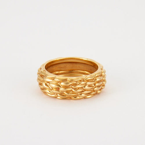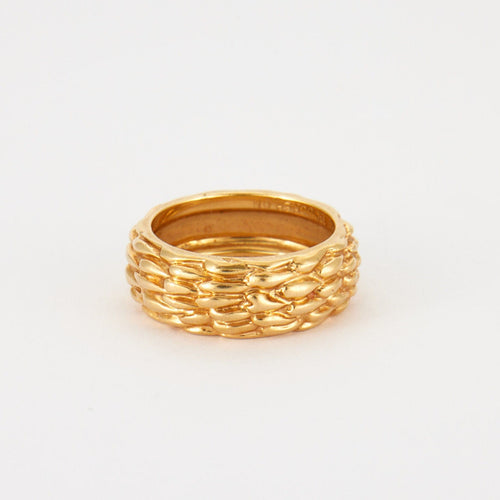 - Anello in oro giallo 18 carati 750 millesimi firmato dalla Maison Boucheron il cui disegno ricorda un cesto di vimini, è firmato e numerato.