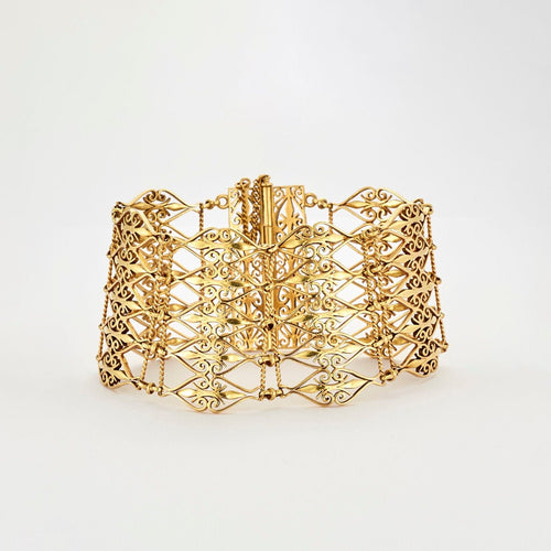 Bracciale a polsino con decorazione traforata in oro giallo