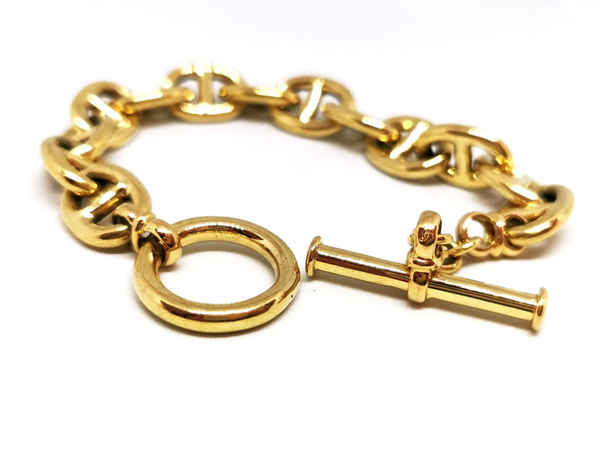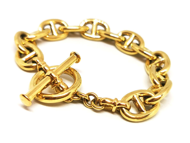 Bracciale in oro giallo 750 millesimi 18 carati, maglia blu navy, lunghezza 20 cm, larghezza 1,18 cm, peso 26,52 gr, punzone del Gufo semicancellato, ottime condizioni.