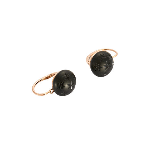 Decorato con semisfera di giaietto incisa con motivi a stella.