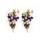 Orecchini in oro giallo 18 kt con foglie di vite e grappolo d'uva con perla d'acqua dolce e lapislazzuli; tagliato con perla e farfalla.
