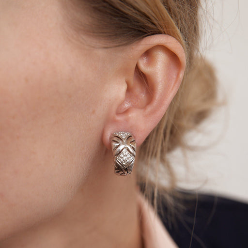 ORECCHINI A CERCHIO DECORATI CON DIAMANTI IN ORO BIANCO 18 CARATI