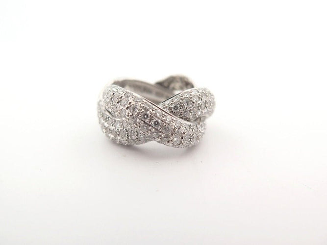 POIRAY Anello a treccia a 4 file in oro bianco 18 carati 128 diamanti 2,3 ct