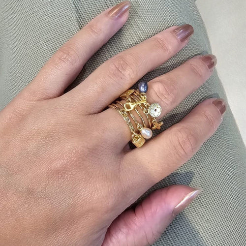 Ispirato ai famosi modelliMonogram del maison Louis Vuitton, questo anello unisce tradizione e modernità attraverso un sottile gioco di texture e contrasti. Le perle naturali, scelte per la loro lucentezza madreperlacea, conferiscono un tocco di morbidezza e femminilità, mentre le simboliche nappe in oro giallo conferiscono a questa creazione un movimento fluido e raffinato.