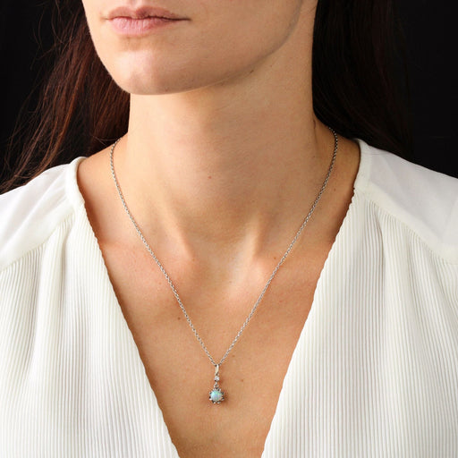 - Un delizioso ciondolo antico, è ornato con un'incastonatura illusoria di un opale cabochon australiano rotondo, il tutto tenuto in una nappa da un motivo ornato da un vecchio diamante a taglio brillante tenuto tra gli artigli.