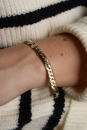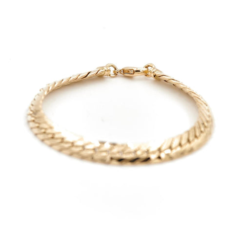 Bracciale in oro giallo 750 millesimi 18 carati, maglia inglese, lunghezza 19,5 cm, larghezza 0,68 cm, peso totale 15,28 gr, punzone testa d'aquila, ottime condizioni.