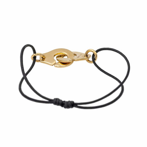 Bracciale in corda firmato dalla Maison Dinh Van oro giallo 750 millesimi (18 carati), modello Menottes R12 lunghezza minima cm 15 larghezza cm 0,12 spessore cordone cm 0,006 misura regolabile grazie ai nodi scorrevoli del cordone peso totale gr 4,00 punzone testa d'aquila condizioni eccellenti