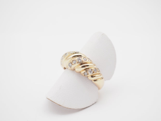 Bellissimo anello godronato in oro giallo 750 millesimi con 18 diamanti, largo 8 mm, misura 53 e con un peso lordo di 3,85 gr.