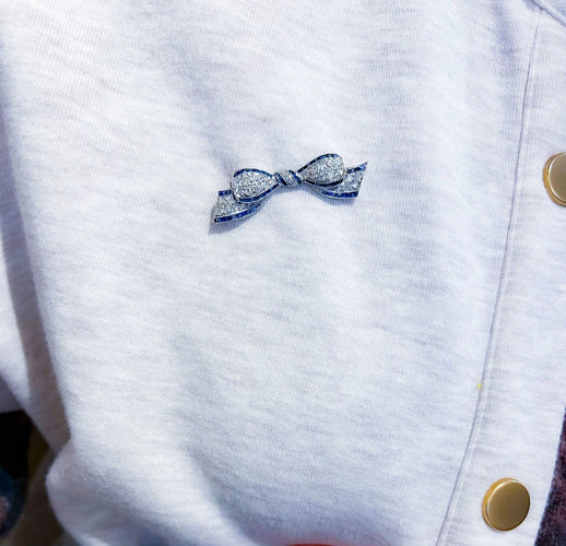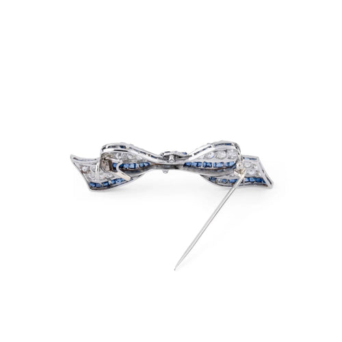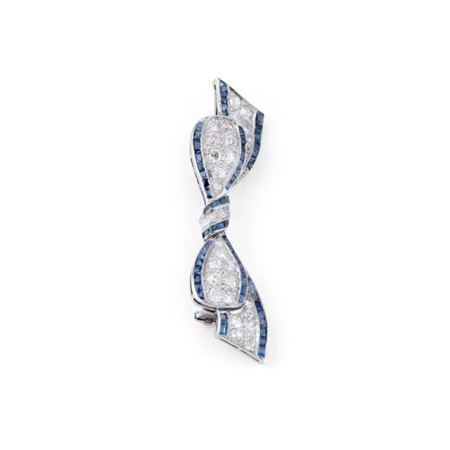 Spilla con fiocco Art Deco platino, diamante, zaffiri calibrati