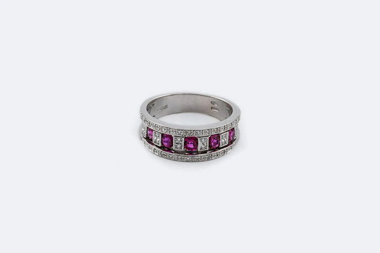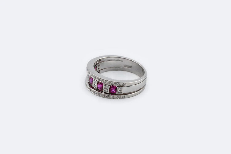 Anello in oro bianco 18 carati. con diamanti e rubini