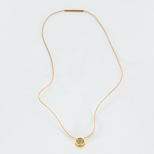 Collana in oro giallo 18 carati (750 millesimi) che sostiene un motivo circolare tempestato di 16 diamanti tondi taglio brillante su una sottile catena tonda a maglia serpente. Firmato "FRED PARIS" e numerato. Marchio dell'artigiano della Casa e marchio del titolo francese (testa d'aquila).