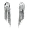 Paio di orecchini pendenti in oro bianco composti da due nappine, una davanti all'orecchio e una dietro. I sei fili sono incastonati con diamanti taglio baguette ornati con navette di diamanti alle estremità.