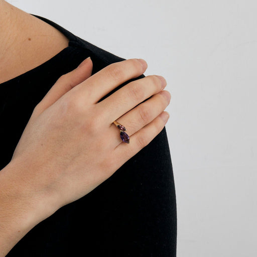 Cocktailring van geelgoud, koraal en onyx