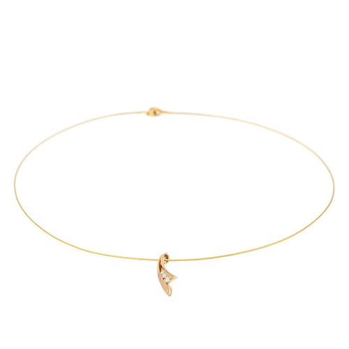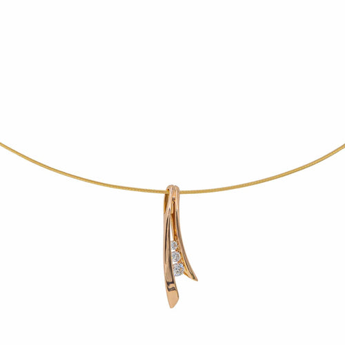 Halsketting gesigneerd door Maison Garel in 750 duizendsten (18 karaat) geelgouden kabel en een hanger in 750 duizendsten (18 karaat) roze goud, Trilogy-model, bezet met 3 diamanten ongeveer G-VS, (1 diamant ongeveer 0,70 ct, 1 diamant van circa 0,45 ct, en 1 diamant van circa 0,26 ct), totaal gewicht diamanten: 0,77 ct, lengte: 40 cm, afmetingen hanger: lengte 2,40 cm, breedte: 0,53 cm, totaal gewicht: 4,39 gram, uitstekende staat