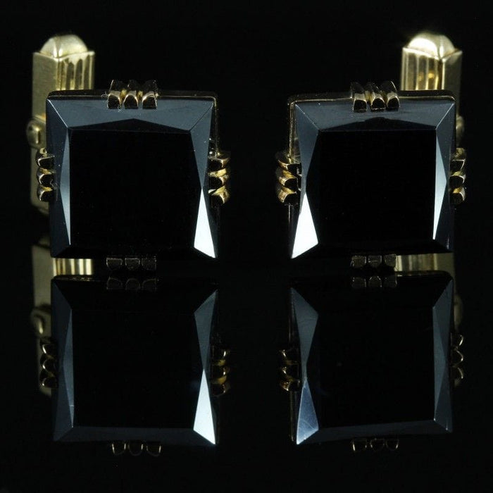 Paar manchetknopen van geelgoud versierd met hematiet