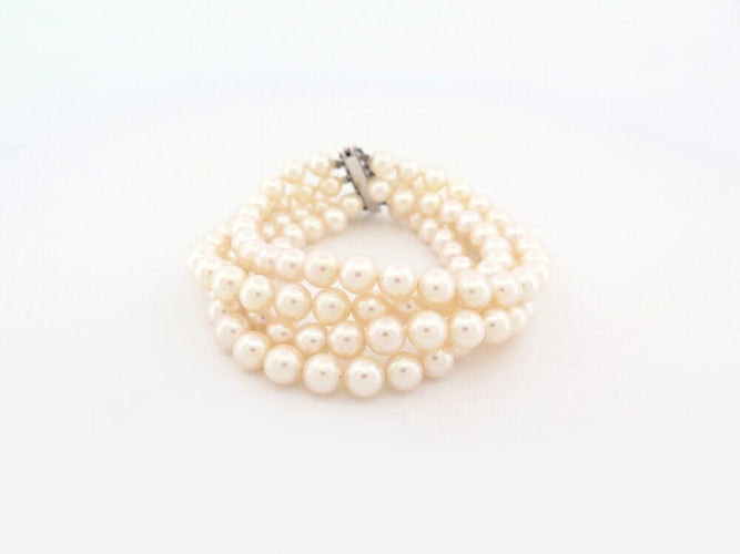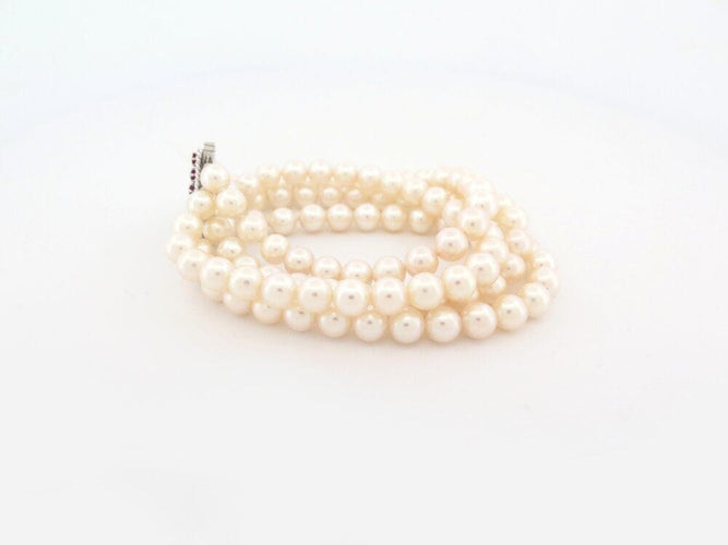 rambaud wormenarmband 4 rijen 108 parels en goud bezet met 6 robijnen pls