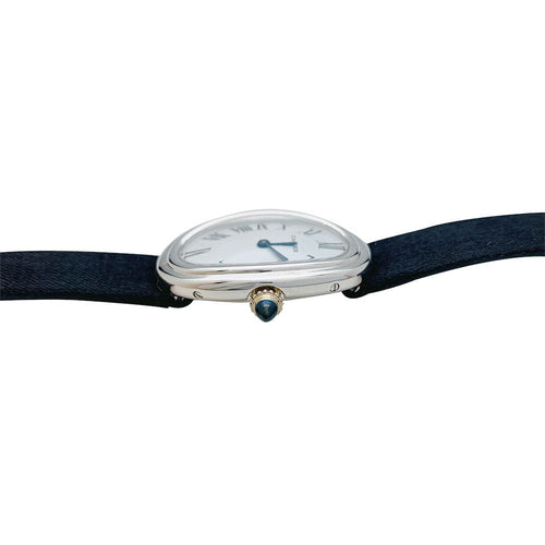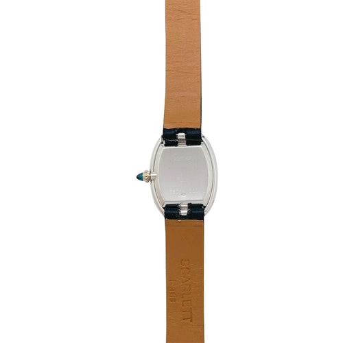 Horloge Cartier model "Baignoire"in witgoud op leer.