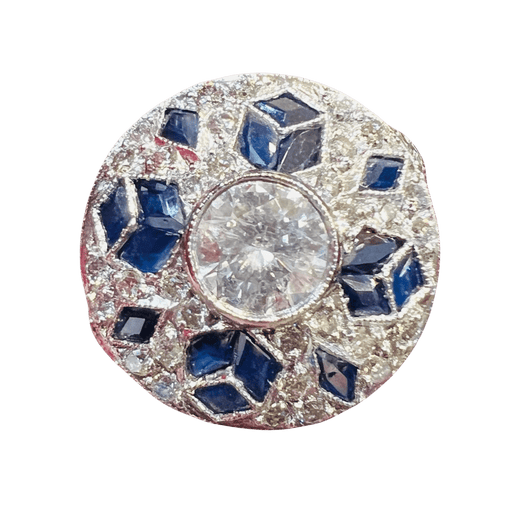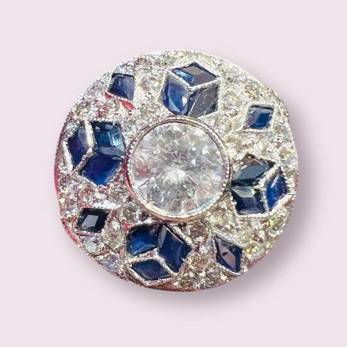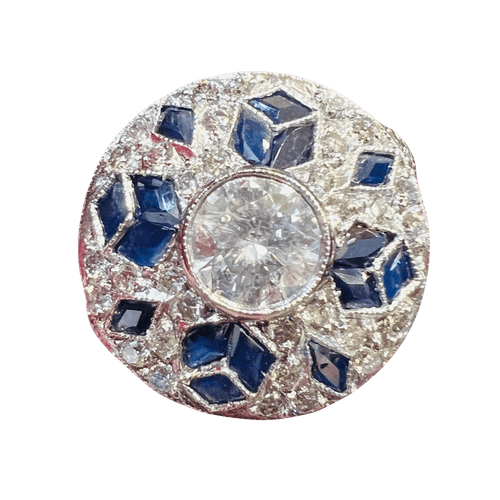 Ring Art Deco, in platina bezet met diamanten en saffieren