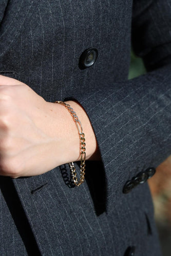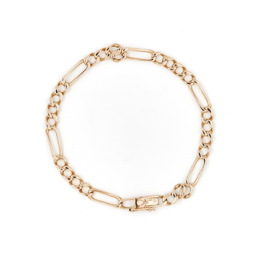 armband van 750 duizendste (18 karaat) geelgoud, afwisselend 4x1 schakel met veiligheidsacht, lengte: 19 cm, breedte: 0,4 cm, totaal gewicht: 9,12 g, keurmerk adelaarskop, uitstekende staat