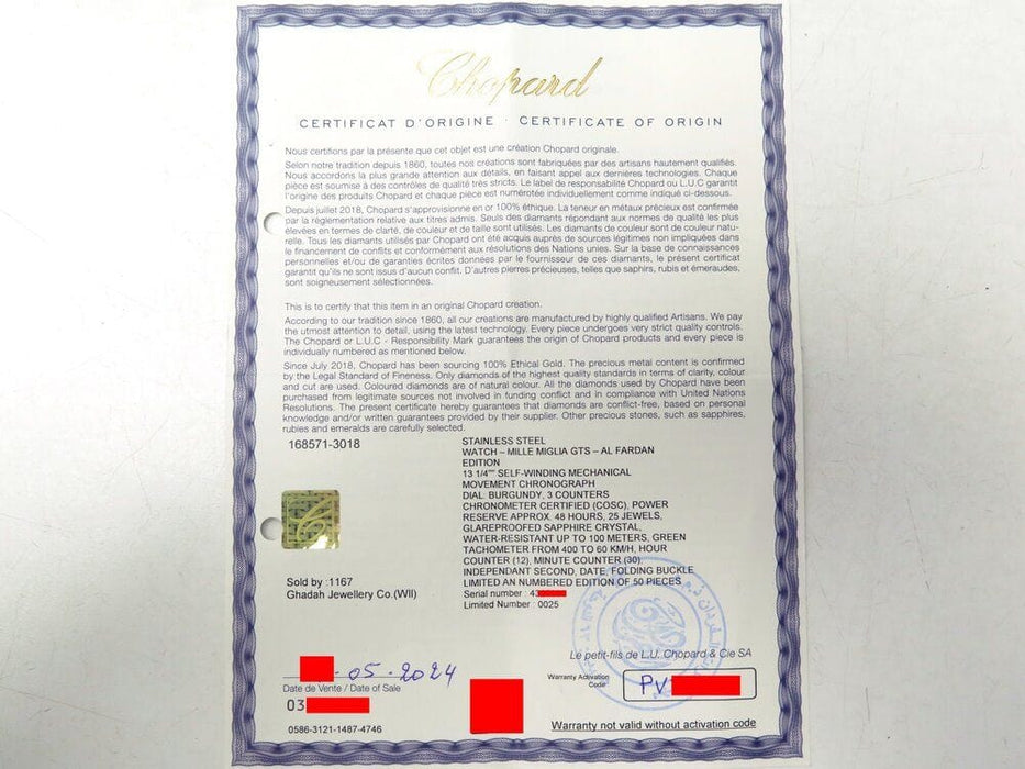 Afgifte van een certificaat van echtheid: factuur van de professionele verkoper en certificaat van deskundigheid.