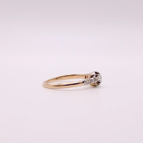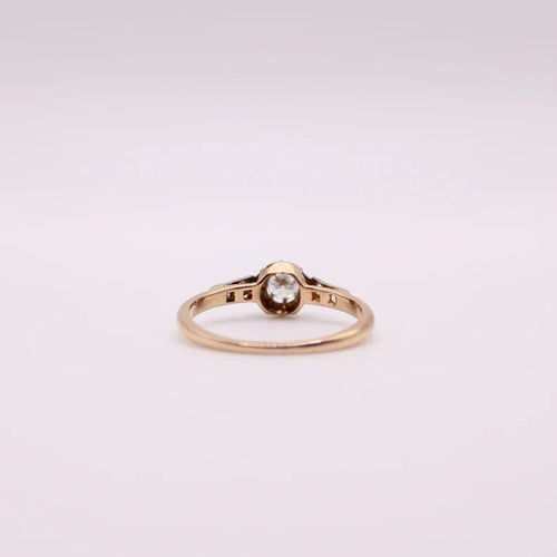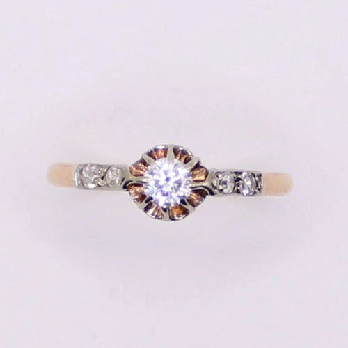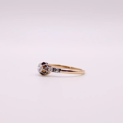 Solitaire ring met diamanten gezet in geelgoud en platina