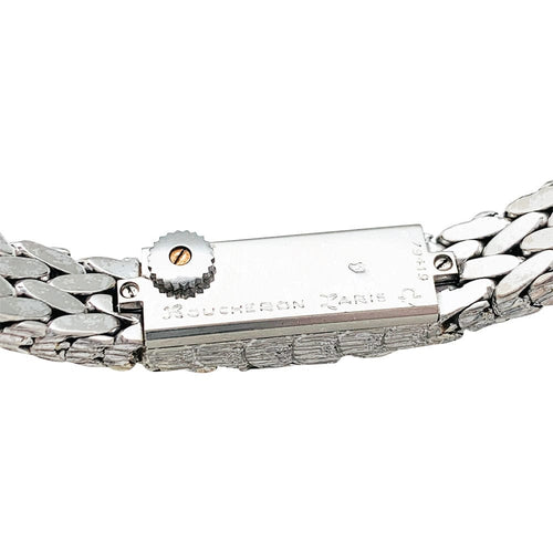 Een zeldzaam polshorloge gesigneerd door het Huis Boucheron, in getextureerd witgoud 750/000.