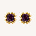Paar oorbellen in 18K (750 duizendste) geelgoud, elk bezet met een ronde gefacetteerde amethist in een rand van gouden parels, klauw gezet. Voor gaatjes in de oren, drukknop voor de veiligheid.